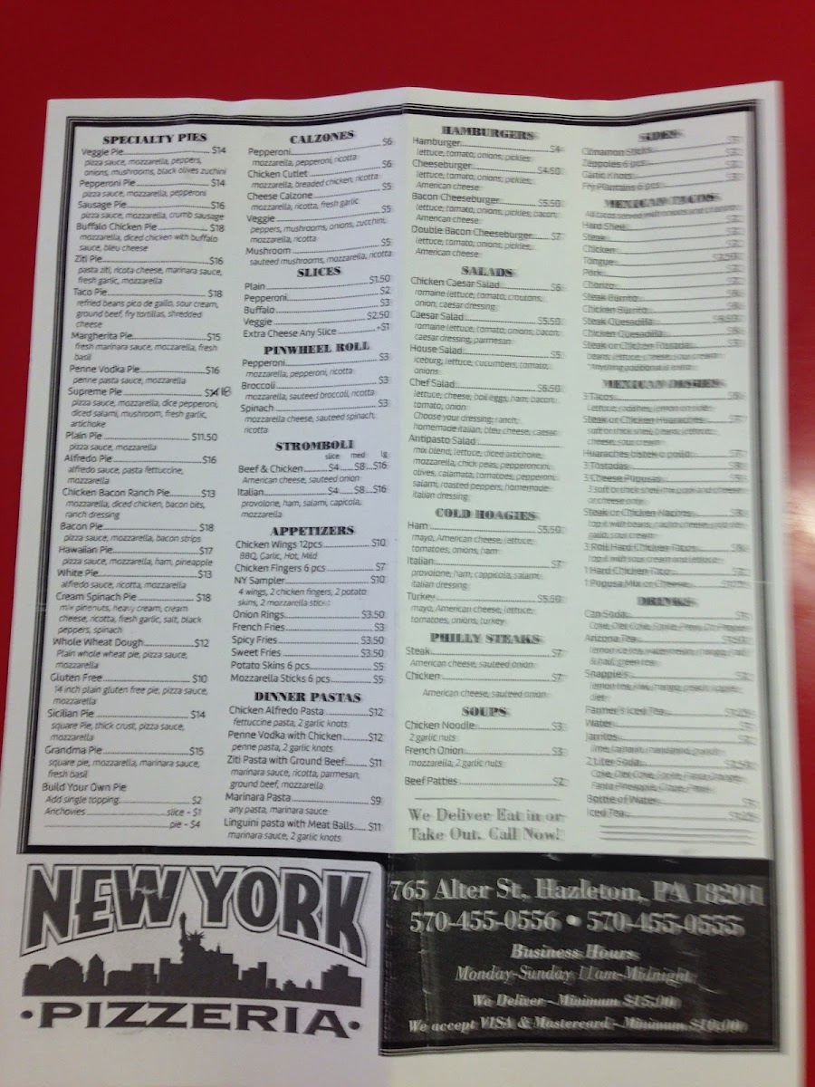 Welcome to New York Pizzeria, a culinary gem nestled in Hazleton, PA. Located at 765 Alter St, this pizzeria promises a slice of authentic New York-style pizza that will leave your taste buds tingling. As you step inside, you’ll be greeted by a warm, family-friendly atmosphere and the delightful aroma of freshly baked pizza.